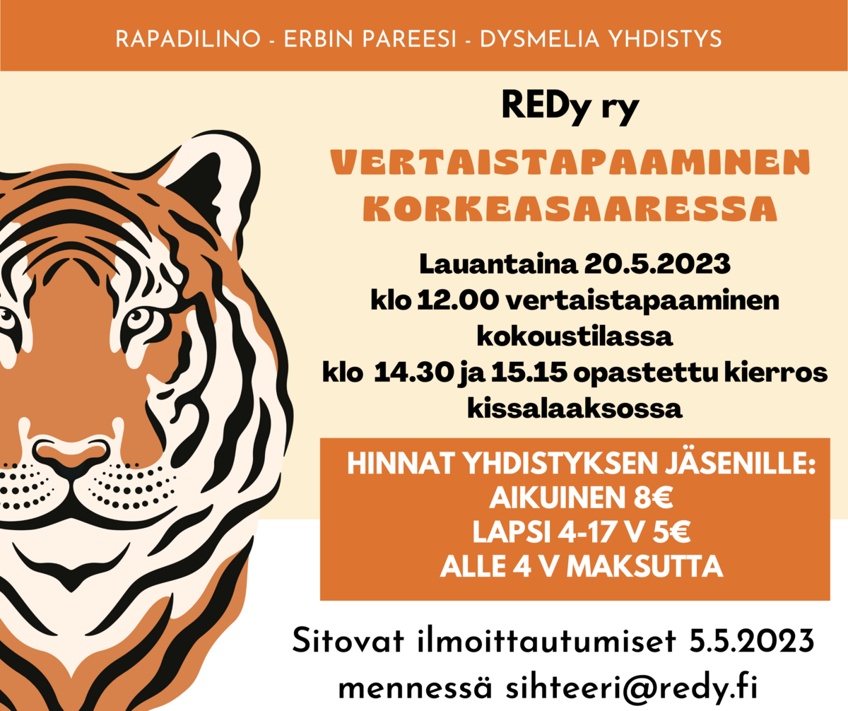 Tervetuloa mukaan viettämään mukavaa päivää Korkeasaareen vertaistapaamisen merkeissä. Pyydämme sitovat ilmoittautumiset 5.5 mennessä sähköpostitse, jotta saamme järjestettyä opastetun kierroksen.